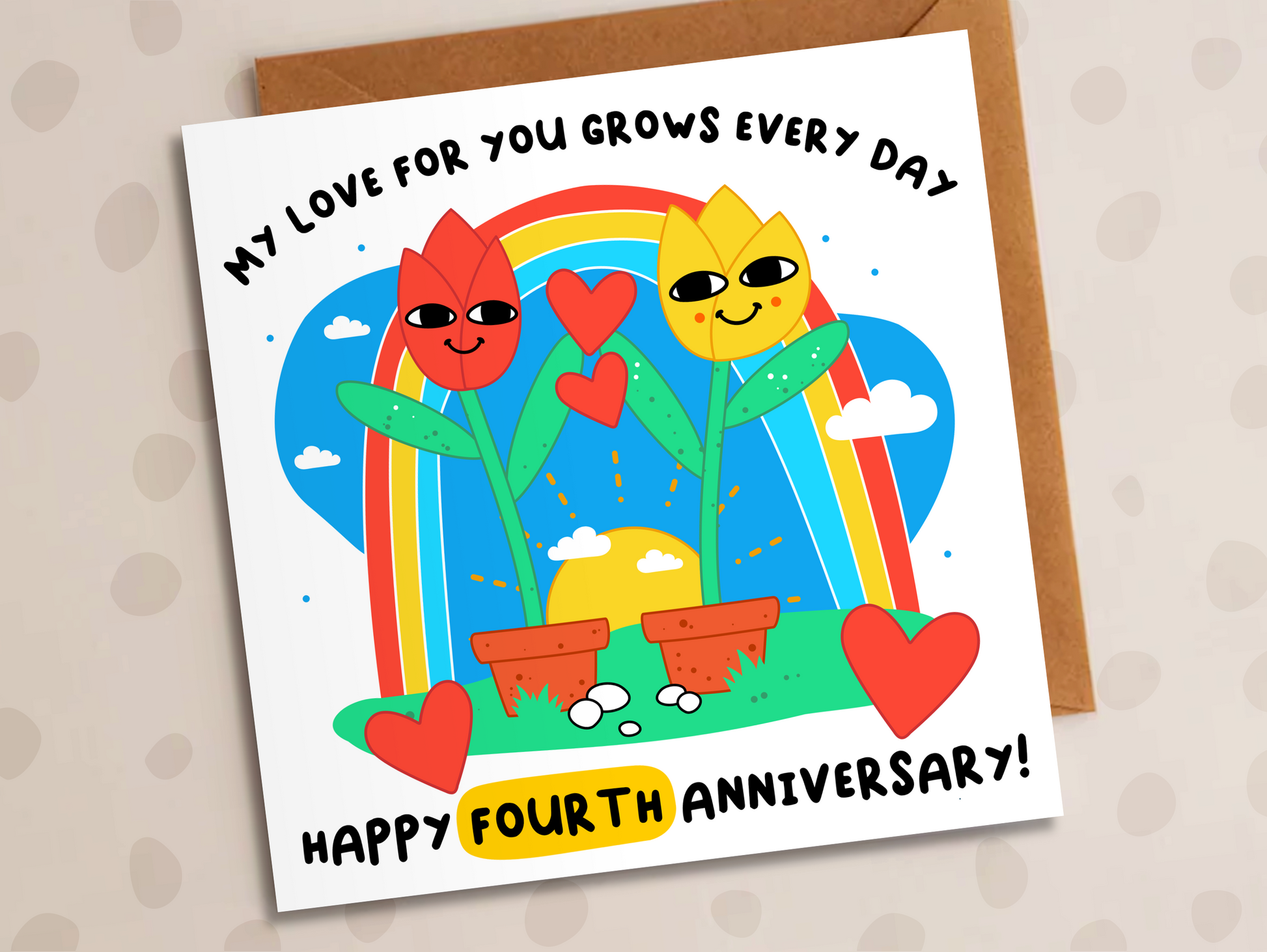 My Love For You Grows Card, 4th Anniversary, Flowers
